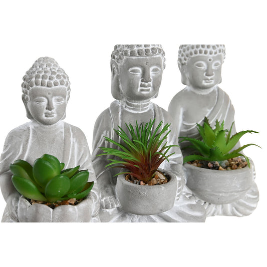 Koristekasvi Home ESPRIT Polyetyleeni Sementti Buddha Itämainen 10,5 x 8 x 16 cm (3 osaa)