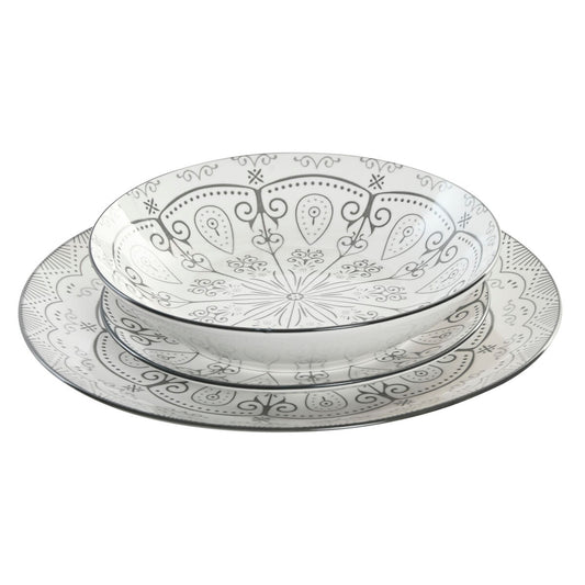 Ruokailuvälineet Home ESPRIT Vaaleanharmaa Posliini 18 Kappaletta