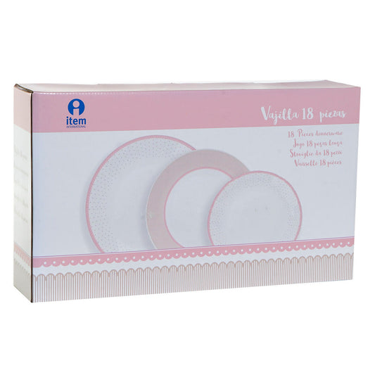 Astiasetti Home ESPRIT Valkoinen Vihreä Pinkki Posliini 18 Kappaletta 27 x 27 x 2 cm