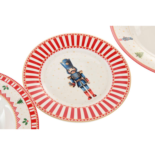 Ruokailuvälineet DKD Home Decor Punainen Beige Posliini Kukka Joulu 27 x 27 x 2 cm 18 Kappaletta